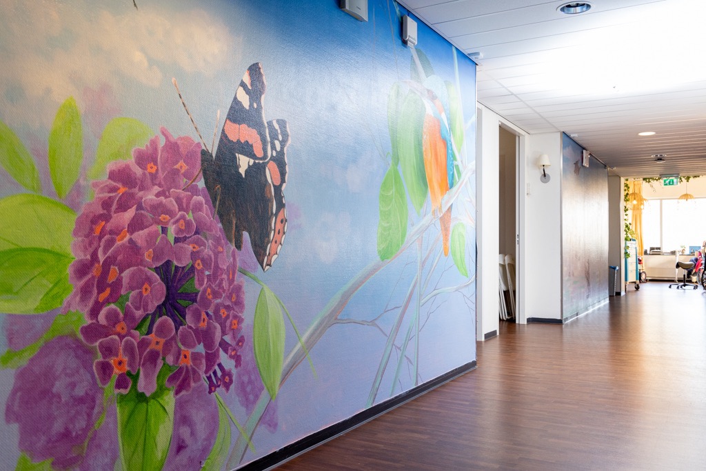 Een muurschildering van mij is opvallend, maar nooit opdringerig, het is helder en kleurrijk, maar tegelijkertijd zacht en uitnodigend. Ik heb een open, losse stijl van schilderen, waardoor het een relaxte vrijheid uitstraalt. Misschien de sfeer die jij best wel zou willen hebben voor jouw bedrijf of organisatie?